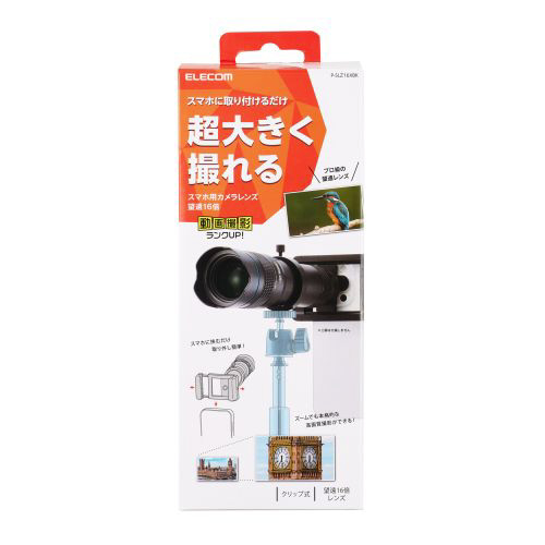 スマートフォンのカメラレンズに合わせて挟むだけで、望遠撮影ができるスマートフォン用カメラレンズ(16倍)です。