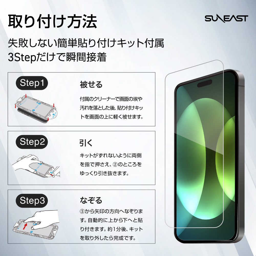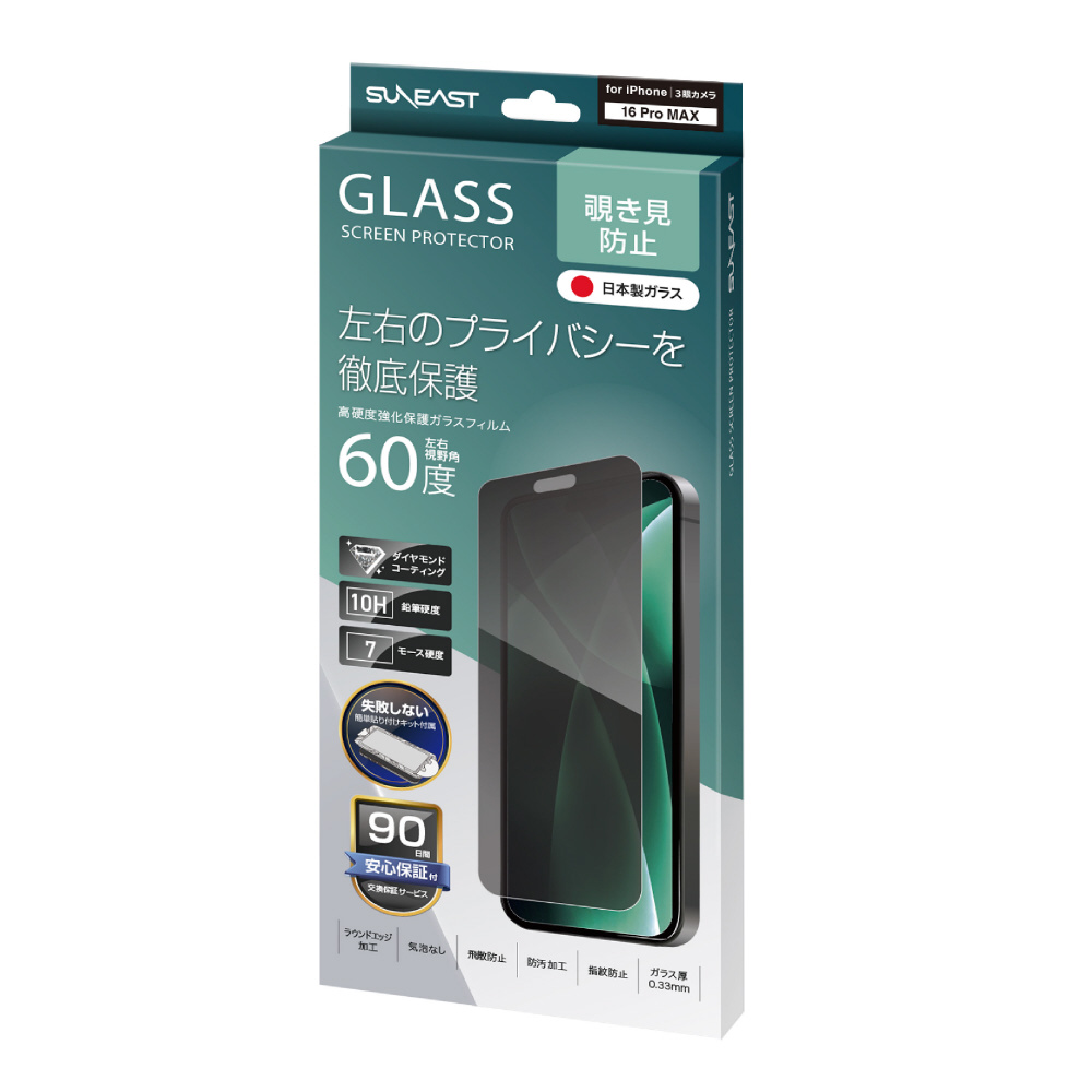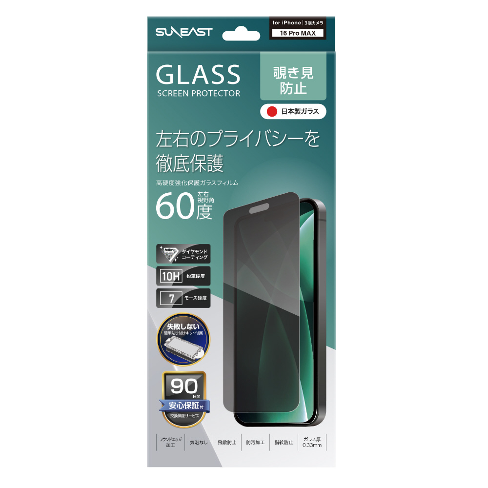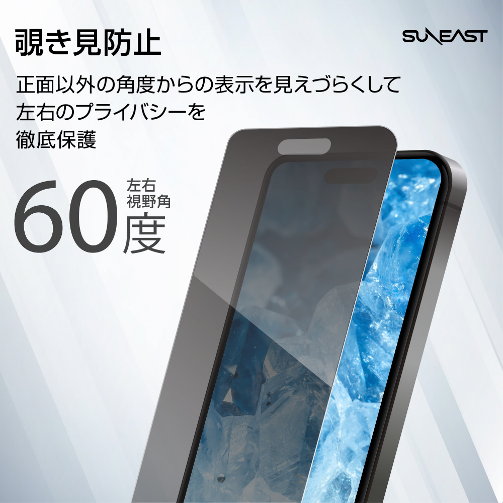 iPhone2024 6.9inch ガラスフィルム 覗き見防止 ダイヤモンドコーティング 10H 気泡レス  取り付けキット付 SE-GLDI1N0AF SUNEAST