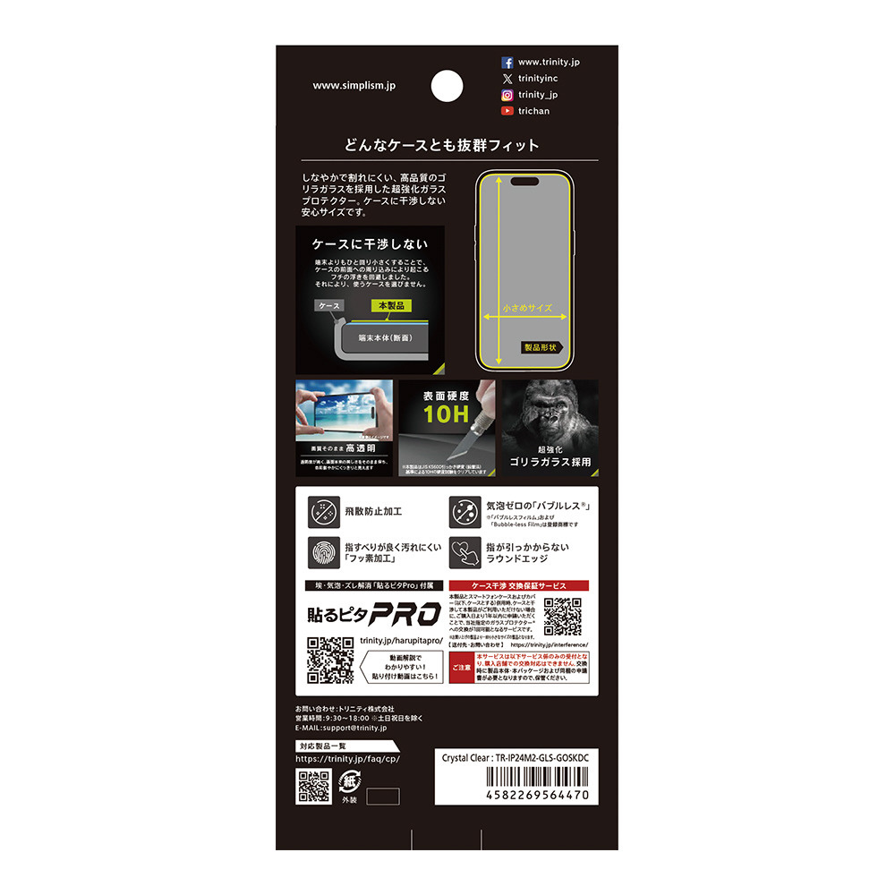 しなやかで割れにくいゴリラガラス採用 ケースに干渉しない安心サイズのプロテクター 超耐衝撃 高透明