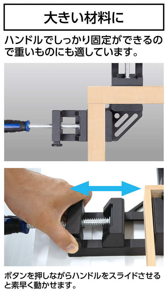 ハンドルでしっかり固定ができるので重い物にも適しています。