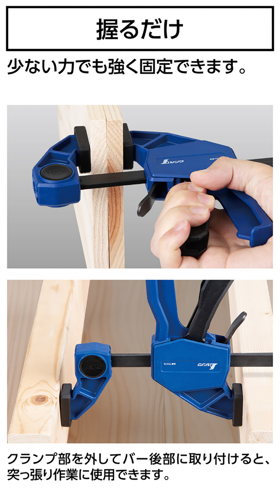 少ない力で強力!!握るだけで少ない力でも強く固定できます。