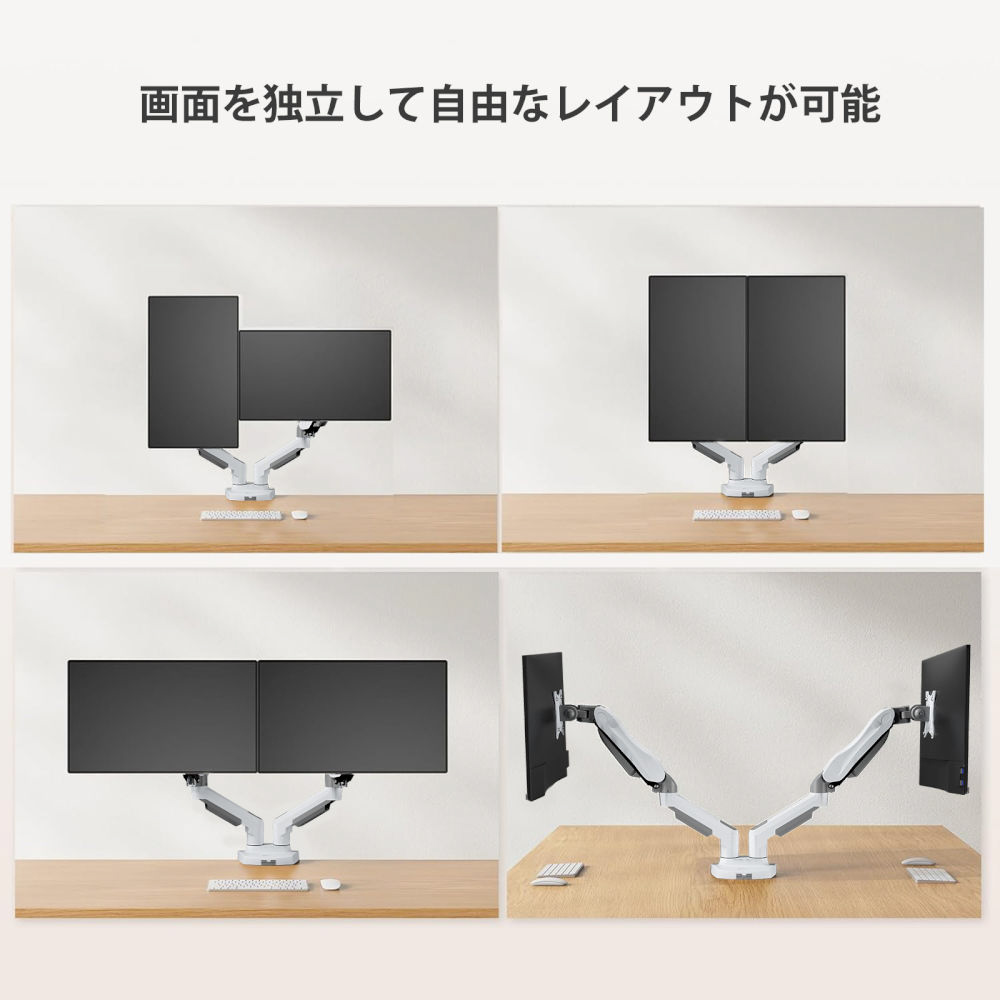 | 商品名 | モニターアーム [2画面 /13〜30インチ] ガススプリング式 ホワイト HNDS31W |