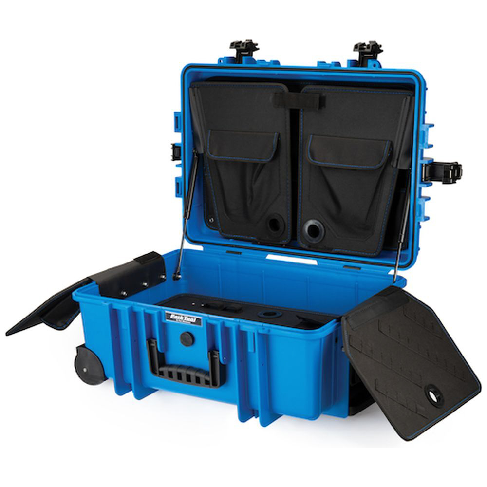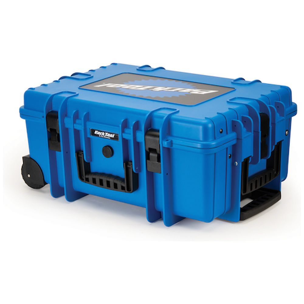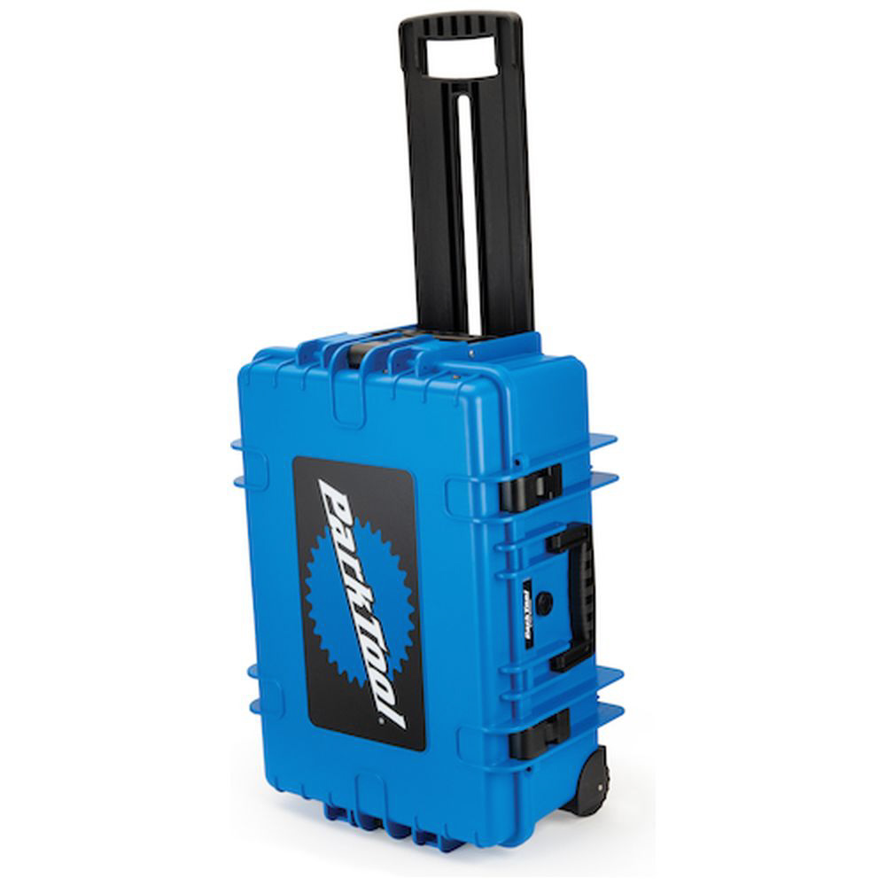 耐衝撃性に優れたポリプロピレン製ツールケースケース本体にキャスター・伸縮ハンドルを備え、工具が入った重い荷物も楽に運べます。