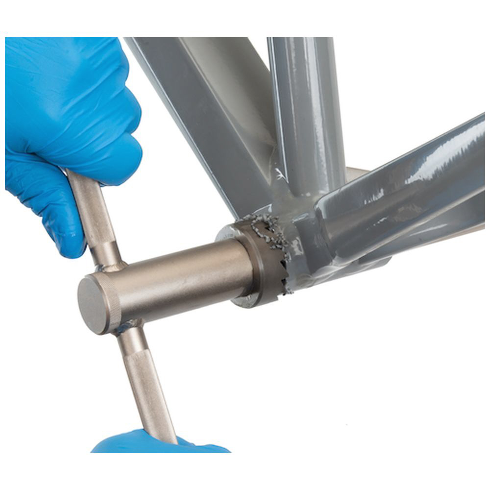 フレームのBBシェルにネジ加工を行う精密切削工具です。