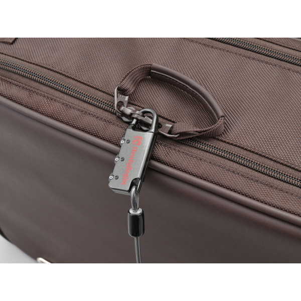 アウターポケット付き。開閉しやすいダブルファスナーは別売のダイヤルロックで盗難抑止が可能です。
