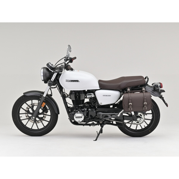 バッグの高さを低くすることでマフラー側への固定や左側に装着した際のバンク角を確保。