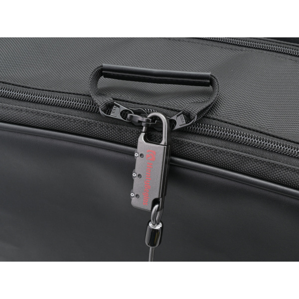 開閉しやすいダブルファスナーは別売のダイヤルロックで盗難抑止が可能です。