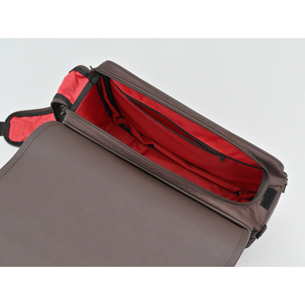 書類や小物の収納に便利なファスナーポケットを装備。
