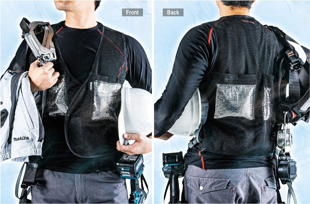 保冷剤対応ファンジャケットの背面収納ポケットに入れて使用します。