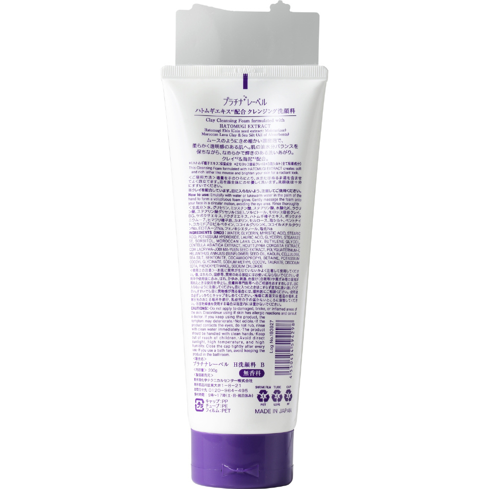 | 商品名 | プラチナレーベル ハトムギクレイクレンジング洗顔 200g |