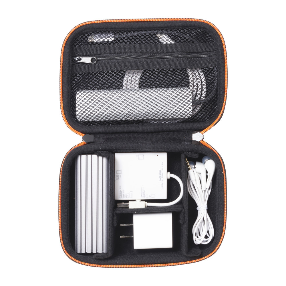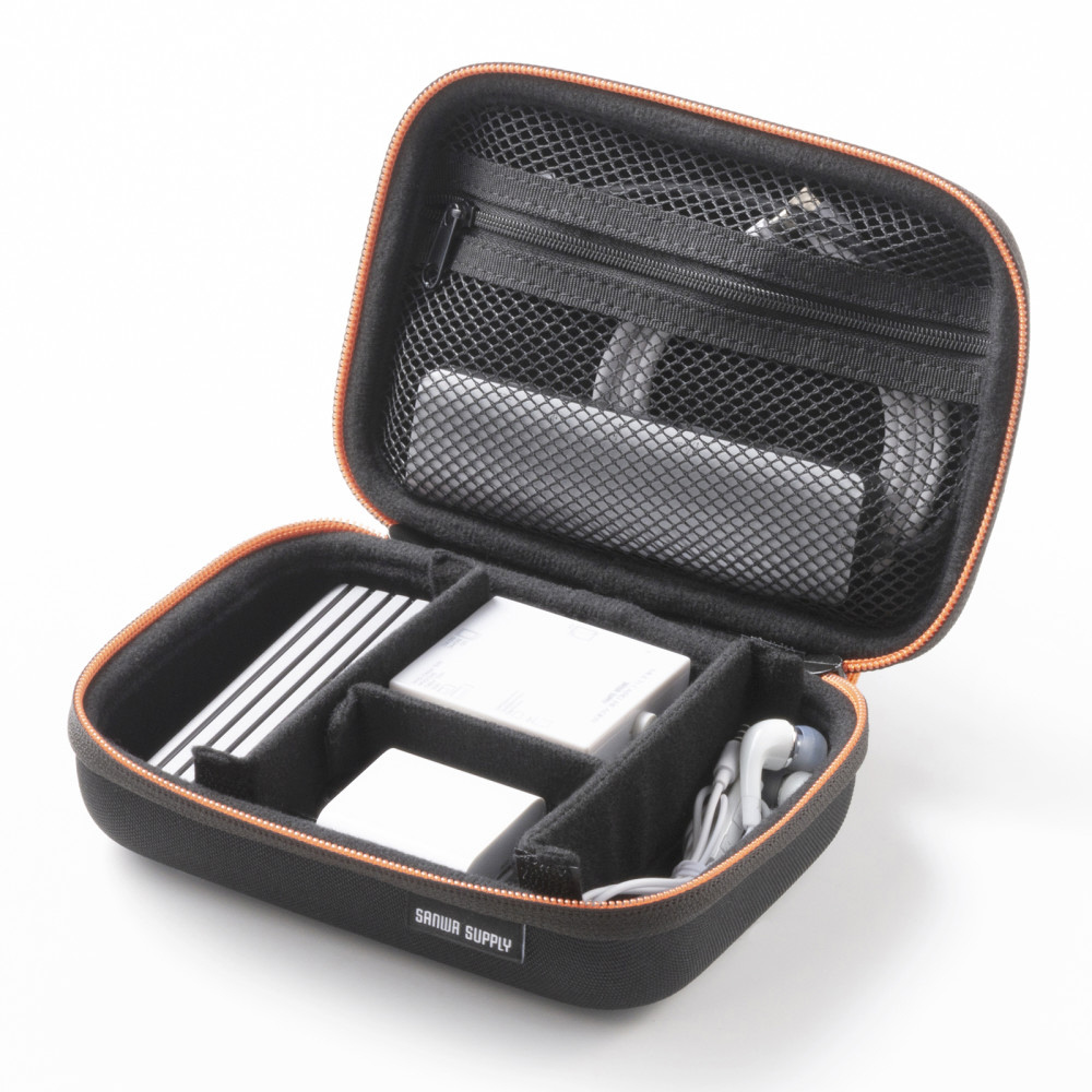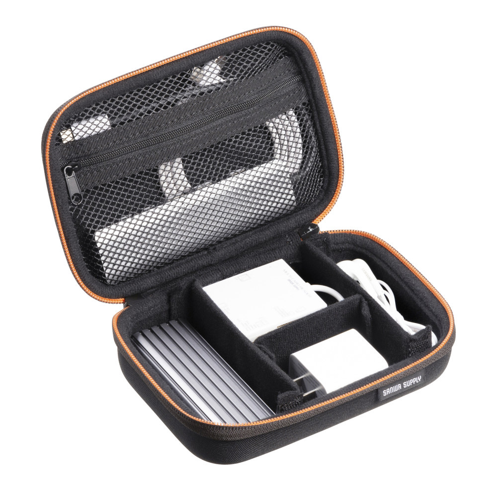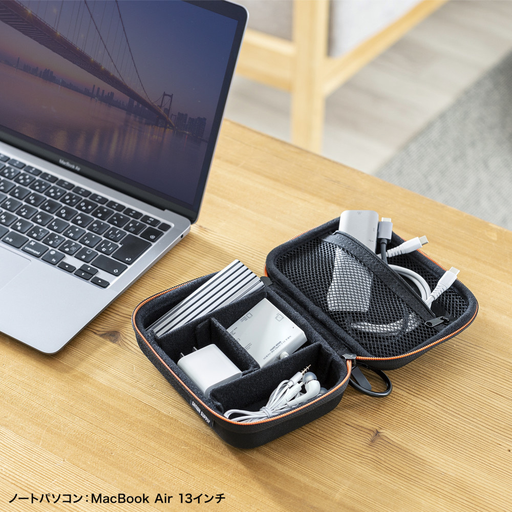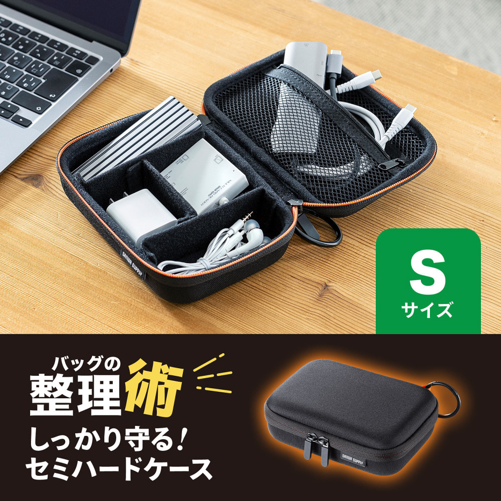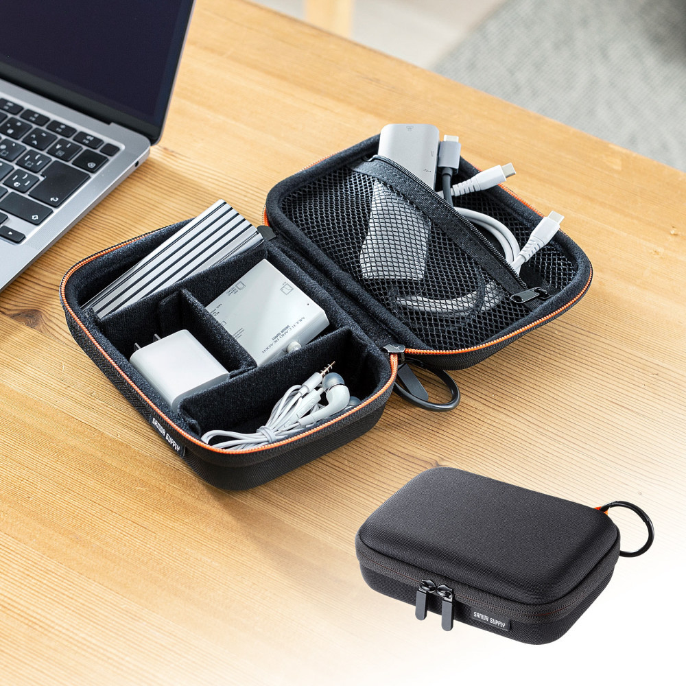 モバイルバッテリーやアダプタなどの小物をまとめてすっきり整理収納できるセミハードケース。幅175×奥行き120×高さ55mm