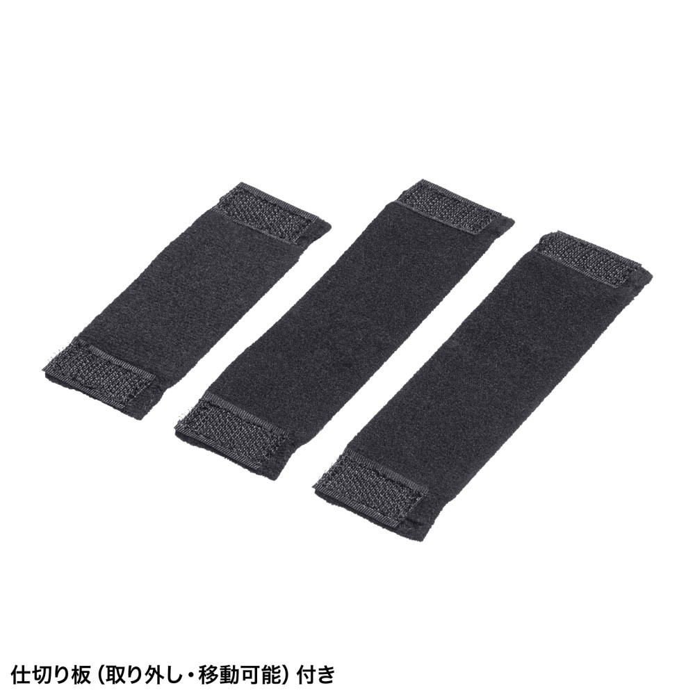 | 仕様1 | [対応機種] モバイルバッテリー、充電器、ACアダプタ、ルーター、マウス、ケーブルなど [サイズ] 外寸/約W175×D120×H55mm 参考収納寸法/約W160×D105×H40(25+15)mm ファスナーポケット内寸/W150×D105×H10mm [重量]178g(仕切り含む) [材質(表装)]EVA(ポリエステル張り) [撥水加工]あり |