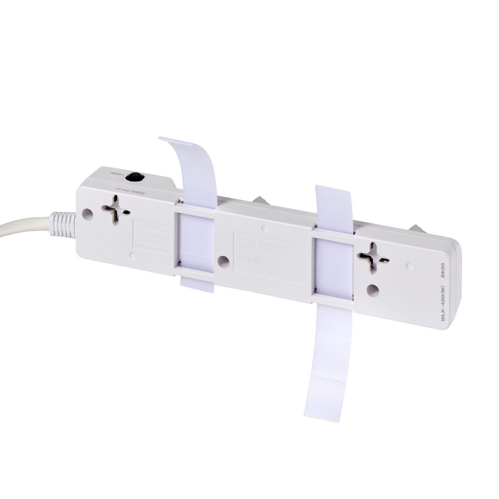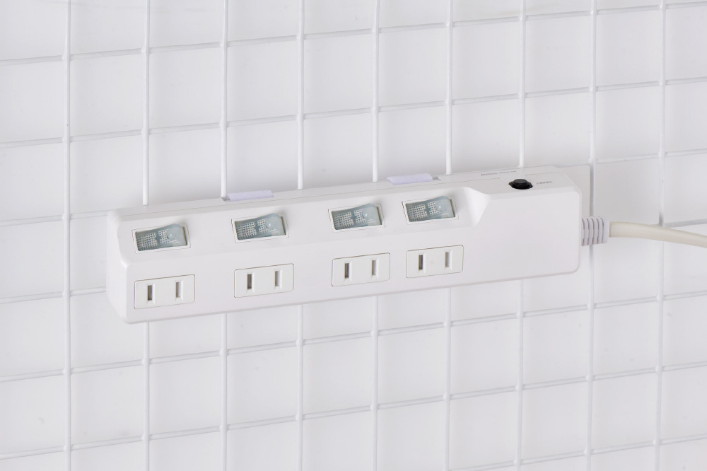 ●ワイヤーネットなどに取り付けることで、足元の邪魔な電源ケーブルを整理できます。