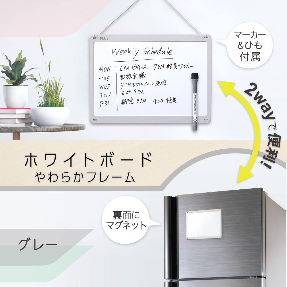 小型壁掛けホワイトボード やわらかフレーム グレー HWB-SF-GY