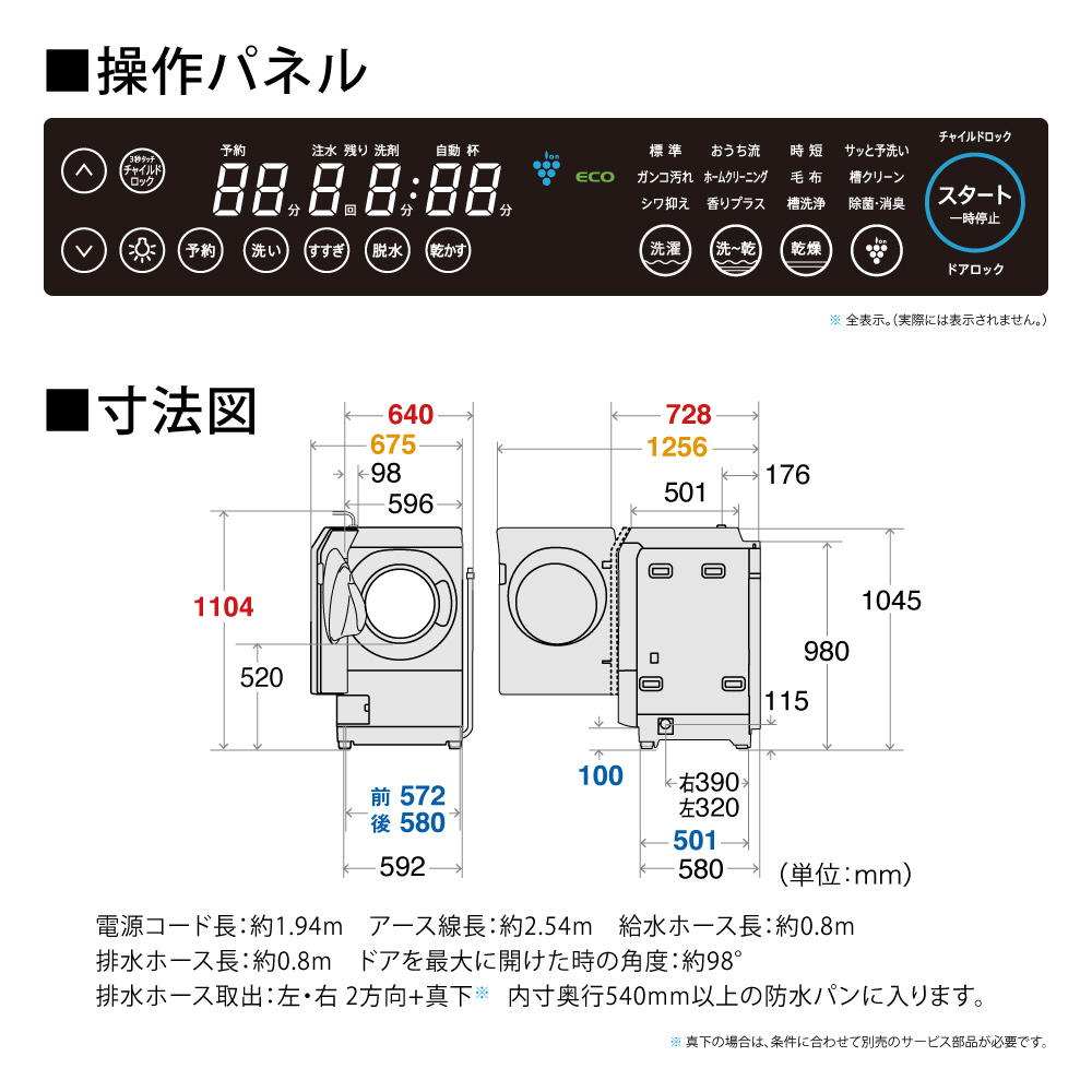 乾燥フィルター/ダクト自動お掃除ドラム式洗濯機