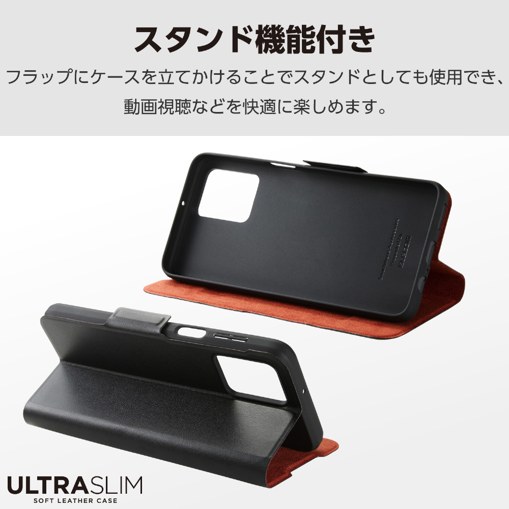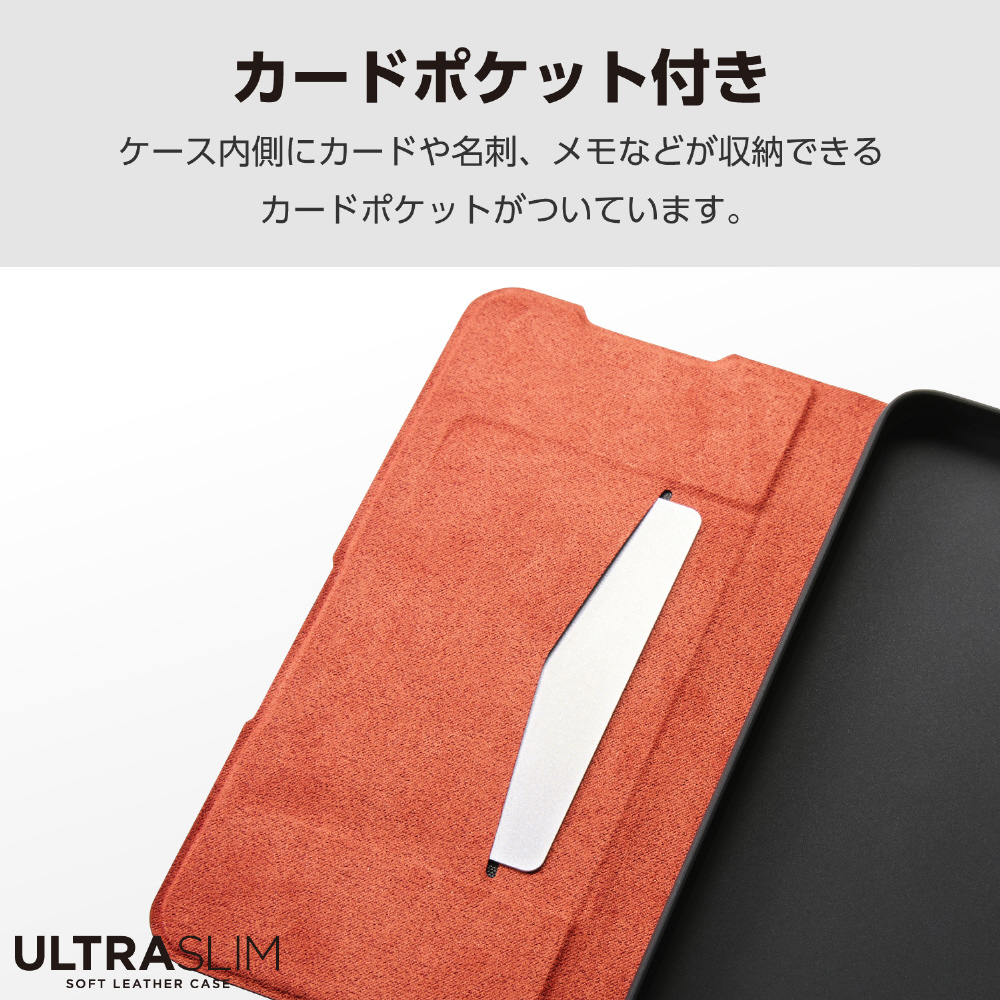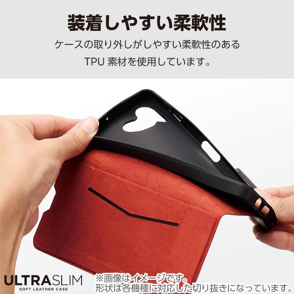 端末の薄さや軽さを損ねない、薄型・超軽量なウルトラスリムタイプのソフトレザーケース(手帳型)です。