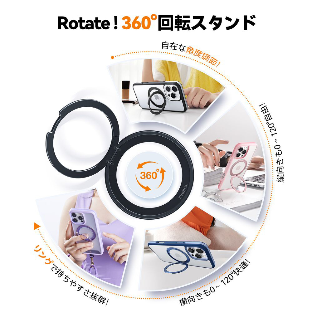 マグネットスタンドは360°回転可能で、MagSafeアクセサリにも対応しています。