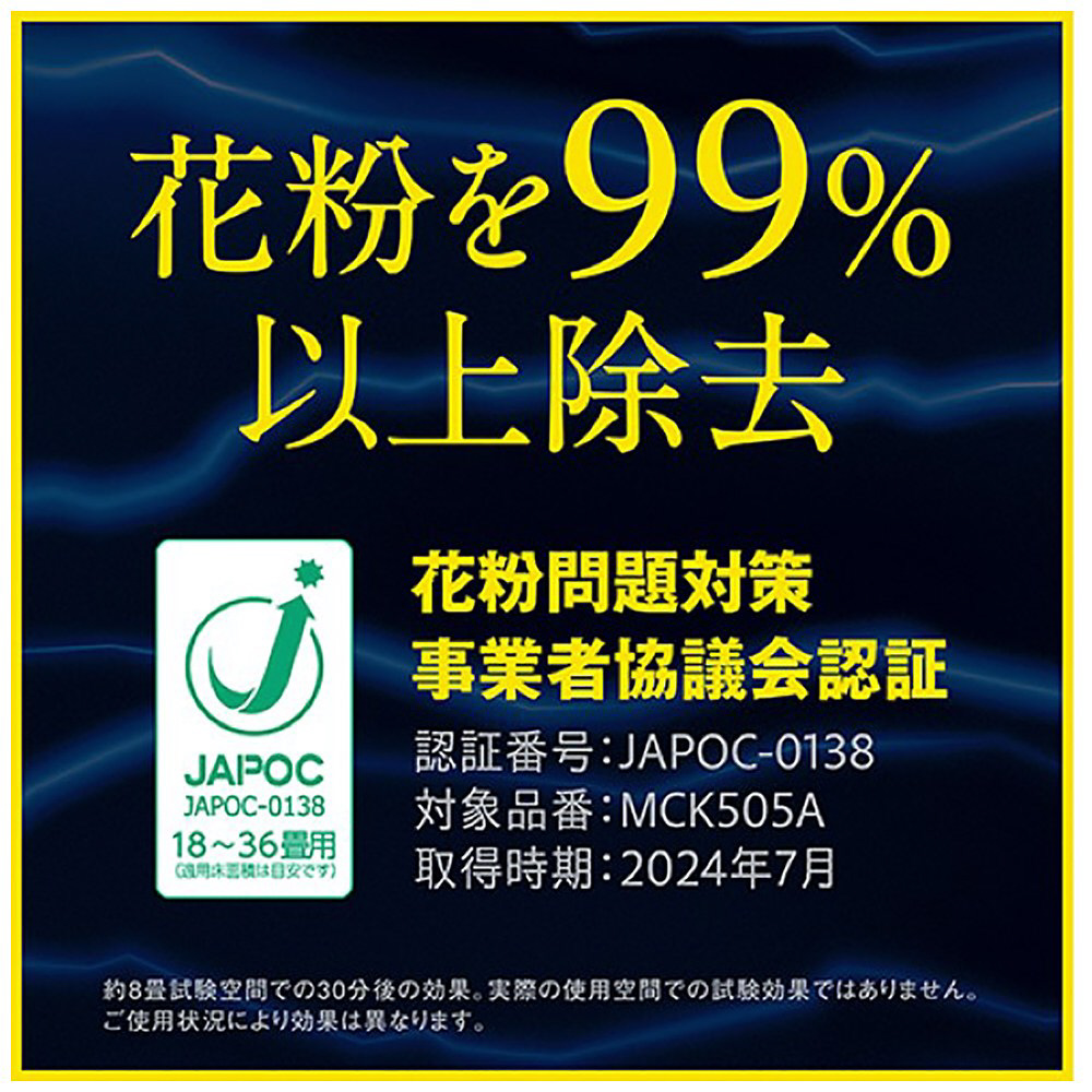 1年中飛散する全国の花粉(16種類)を無力化※。