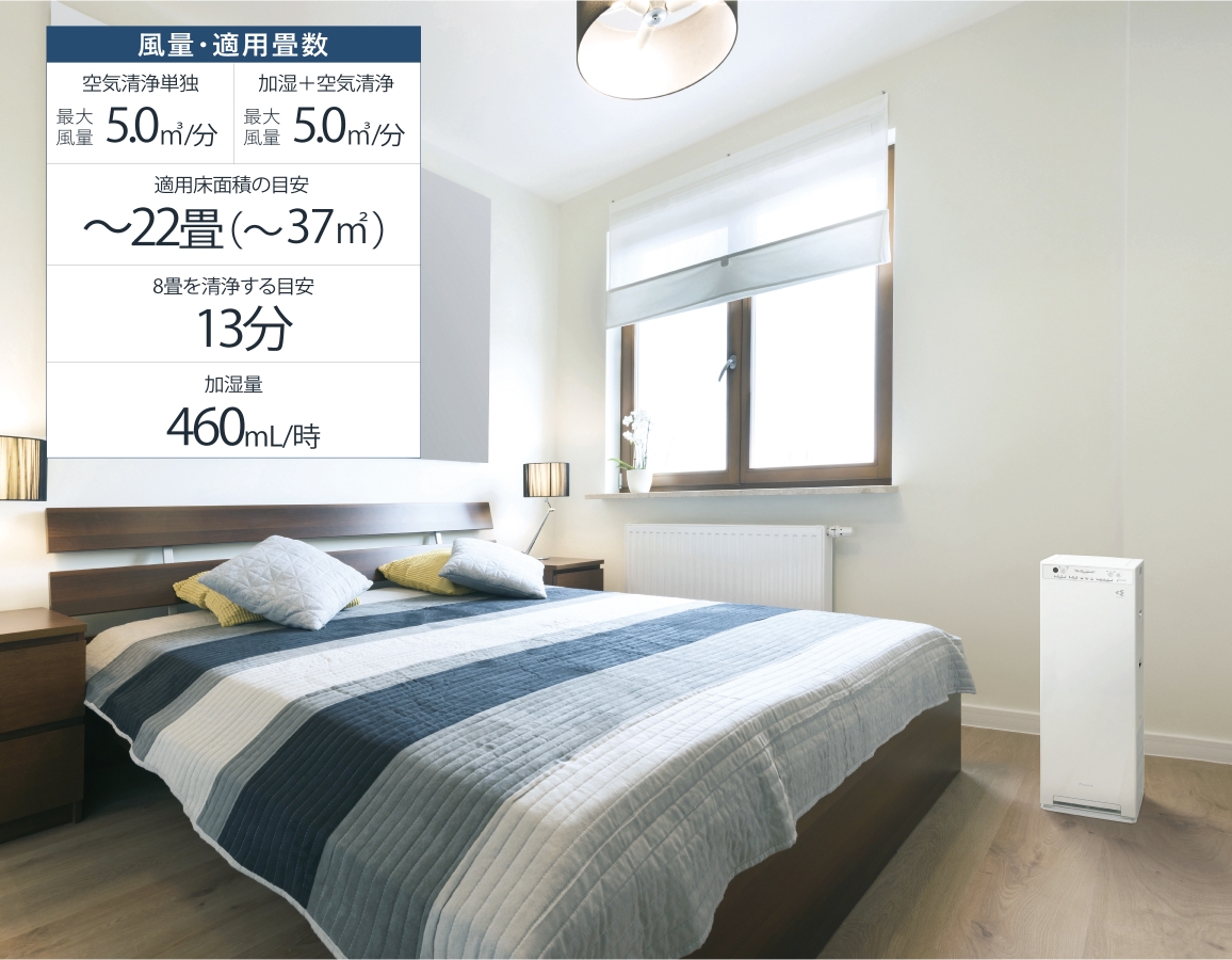 | 最大加湿適応畳数(空気清浄機(エアクリーナー)) | 最大適用畳数(加湿):13畳 |