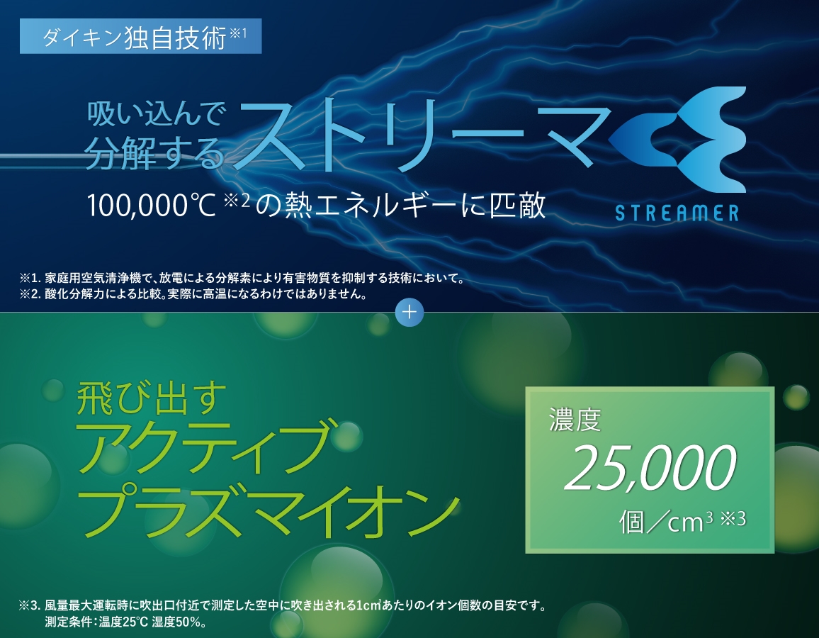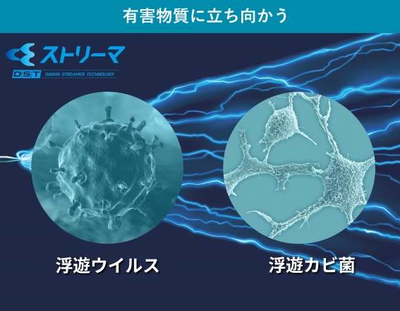 ダイキン独自の酸化分解テクノロジーストリーマ技術※で空気清浄機本体内に吸い込んだ有害物質を分解し、