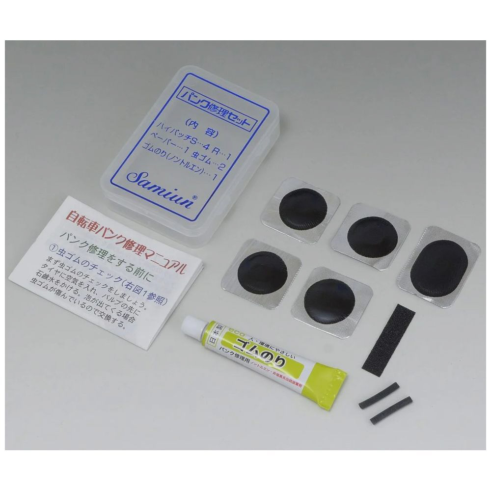 パンク修理に必要なアイテムが入った強力接着のパッチ入りパンク修理セット。
