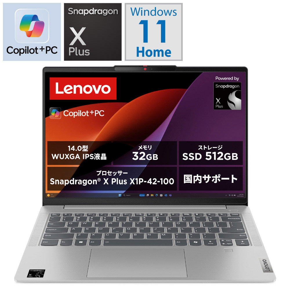 ノートパソコン IdeaPad Slim 5x Gen 9 クラウドグレー 83HL001DJP [Copilot+ PC /14.0型 /Windows11 Home /Snapdragon /メモリ:32GB /SSD:512GB /日本語版キーボード /2024年10月モデル]