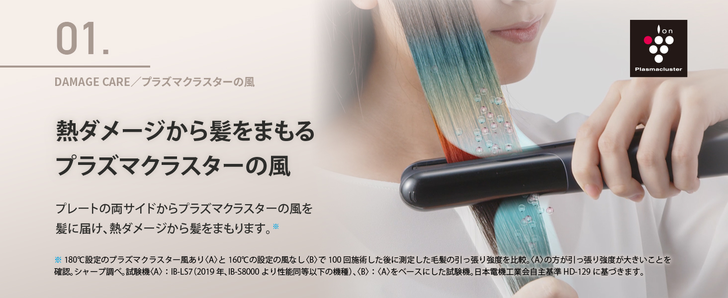 プレスした髪に、プラズマクラスターイオンを含んだ風をたっぷり届けて、熱で失われる髪の水分を補給1※します。