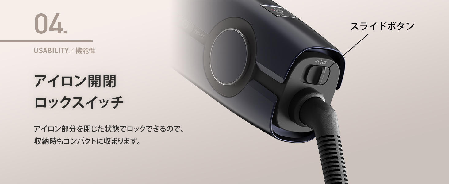 ●アイロン部分を閉じた状態でロックできるので、収納時もコンパクト。