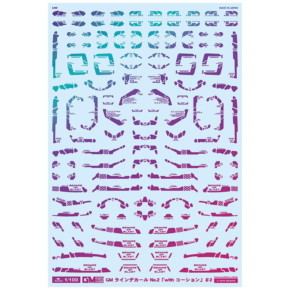 1/100 GM ラインデカール No.2「with コーション」#2プリズムパープル&ネオンパープル