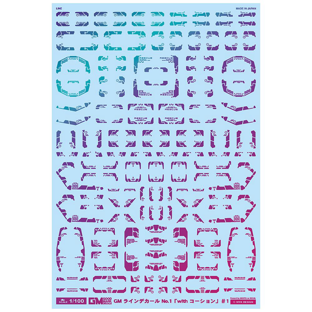 1/100 GM ラインデカール No.1「with コーション」#1プリズムパープル&ネオンパープル