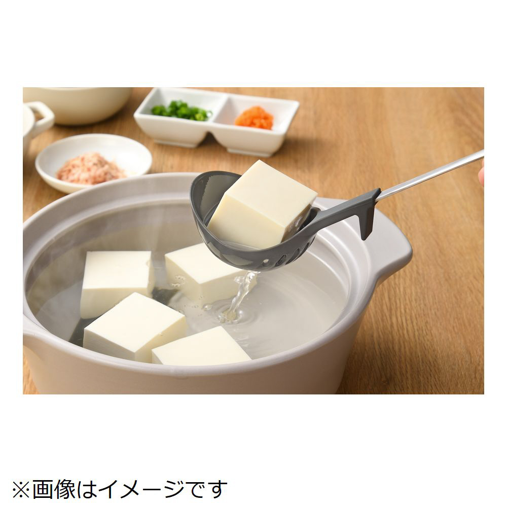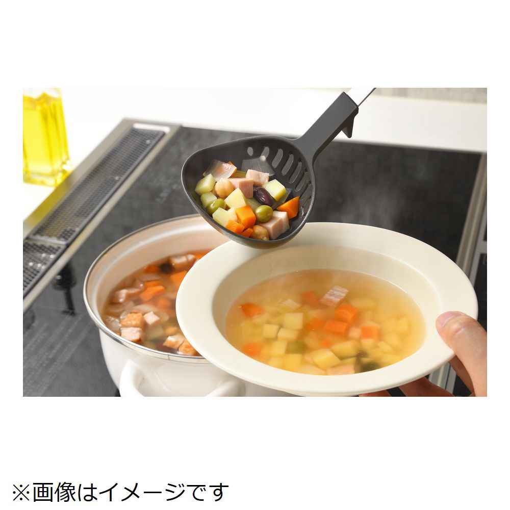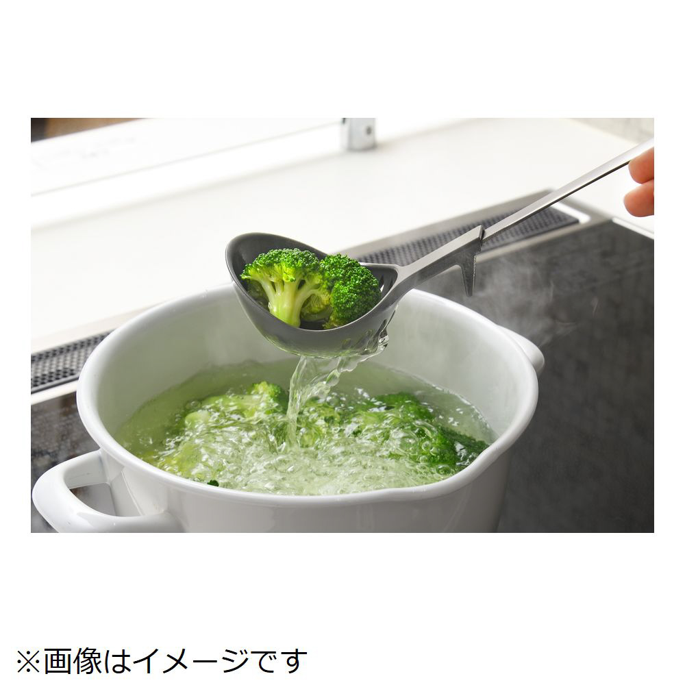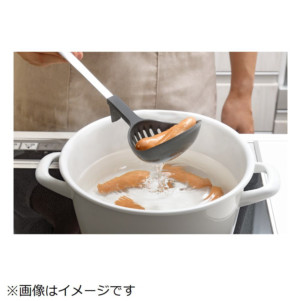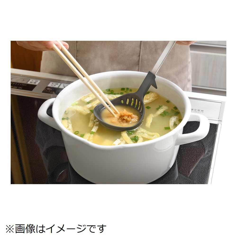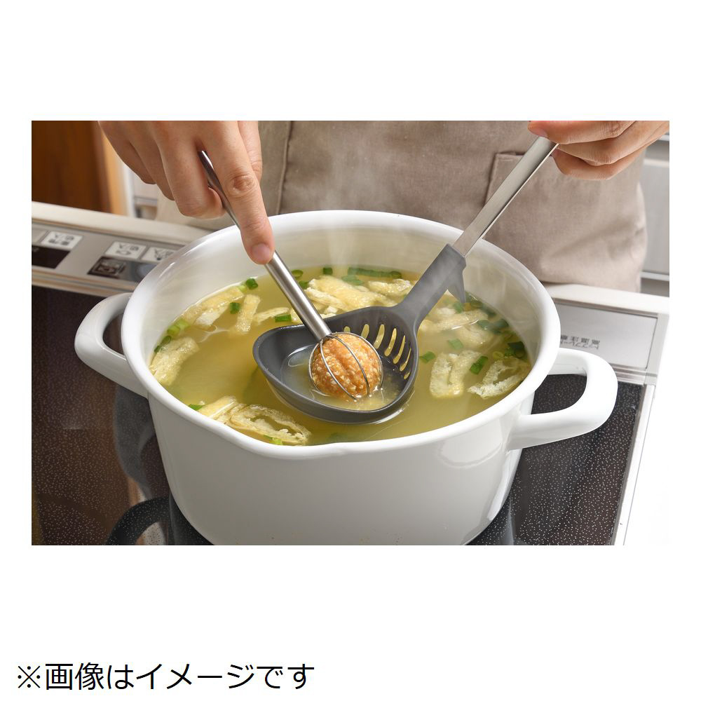 ウィンナーやブロッコリーなど、大きなザルを出さなくてもその場でサッとすくえます。包み込むような形状でお味噌が逃げにくく、ほどよくお湯が入るので、お味噌ときがラクラクです。スタンド付きなので調理中、置き場に困らない。