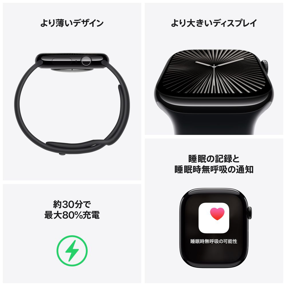 [GPSモデル]大いなる薄さ。最も大きいディスプレイ。最も薄いApple Watch。最も大きいディスプレイ。大々的にアップグレード。