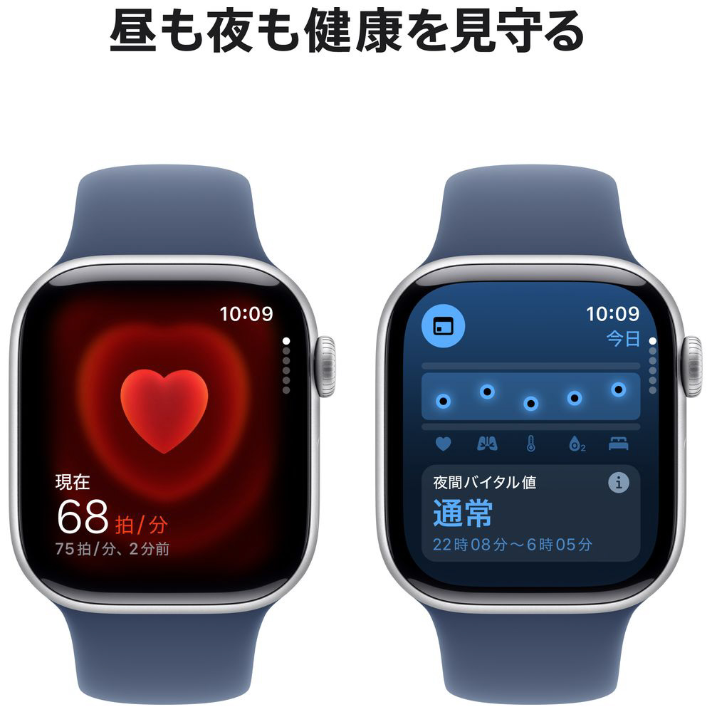 Apple Watch Series 10(GPSモデル)- 42mmシルバーアルミニウムケースとデニムスポーツバンド ‐ S/M MWWA3J/A