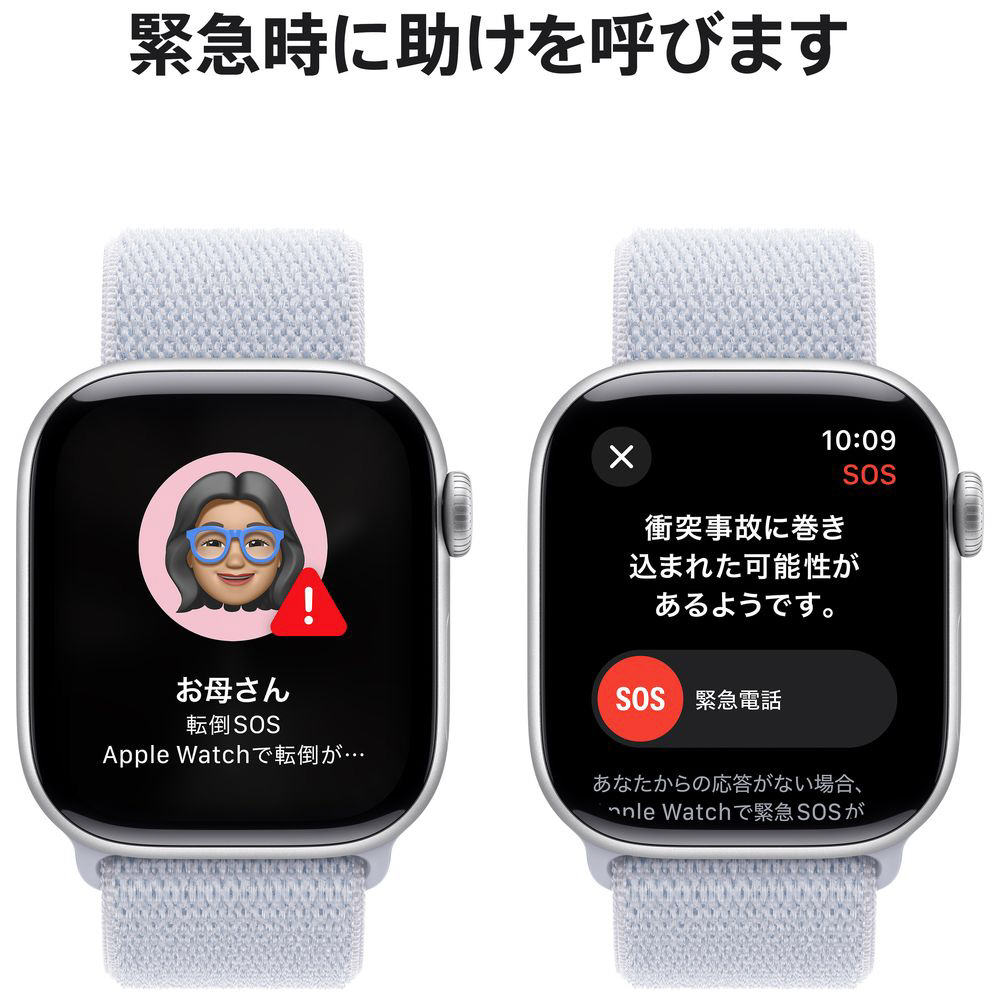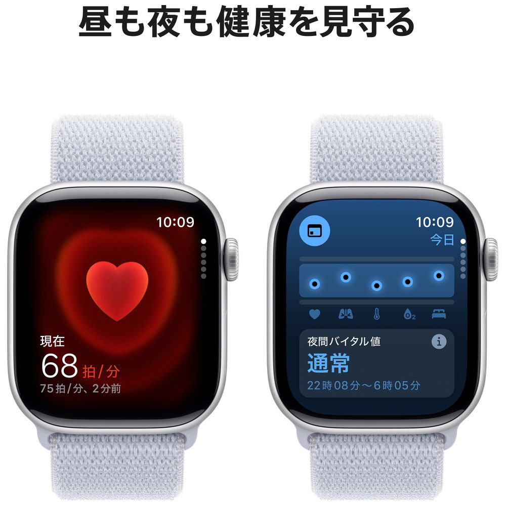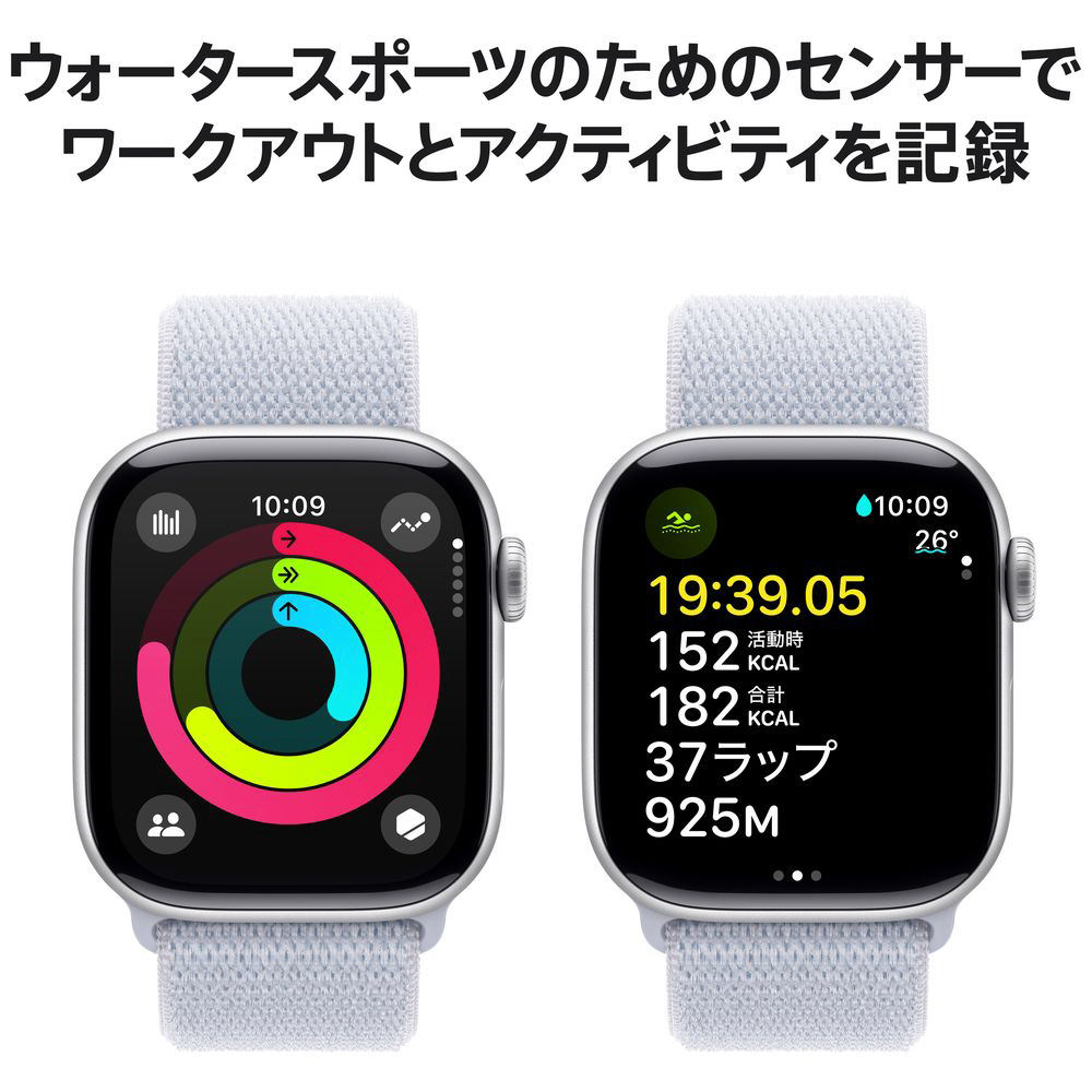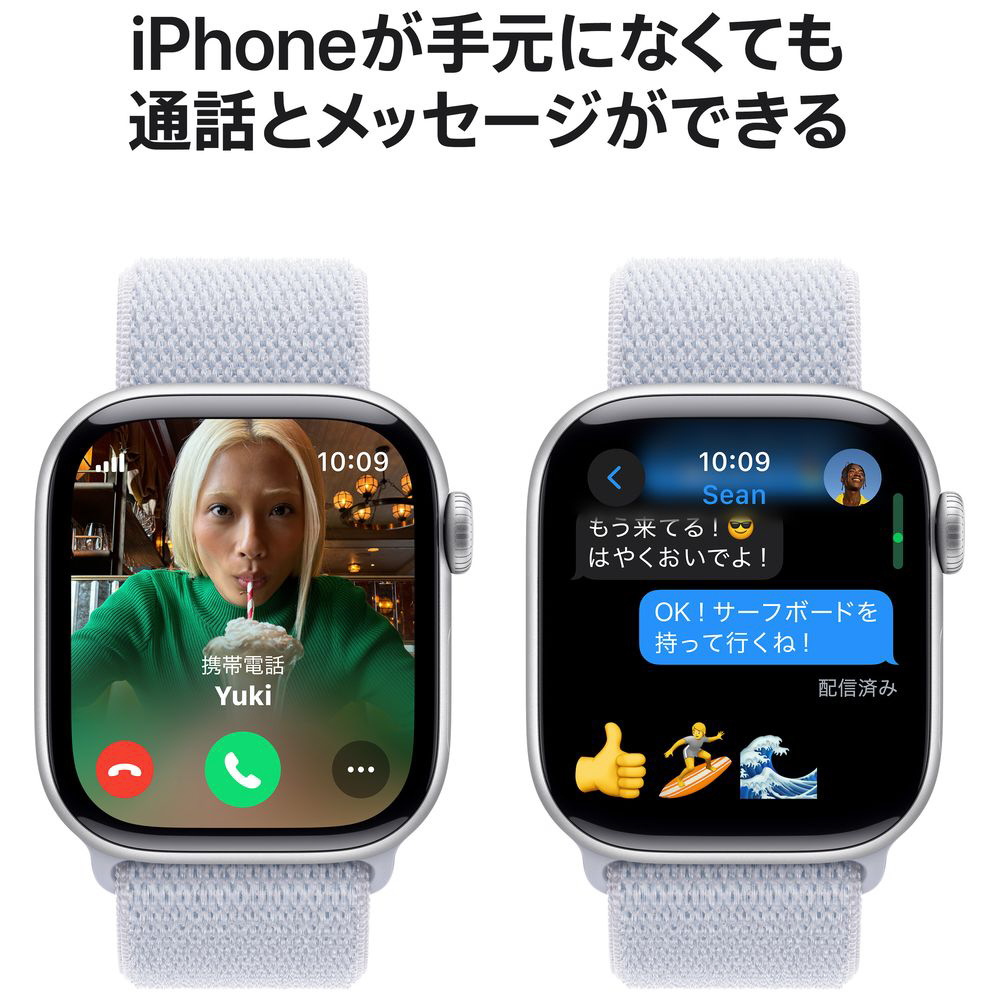 Apple Watch Series 10(GPS + Cellularモデル)- 42mmシルバーアルミニウムケースとブルークラウドスポーツループ MWX53J/A