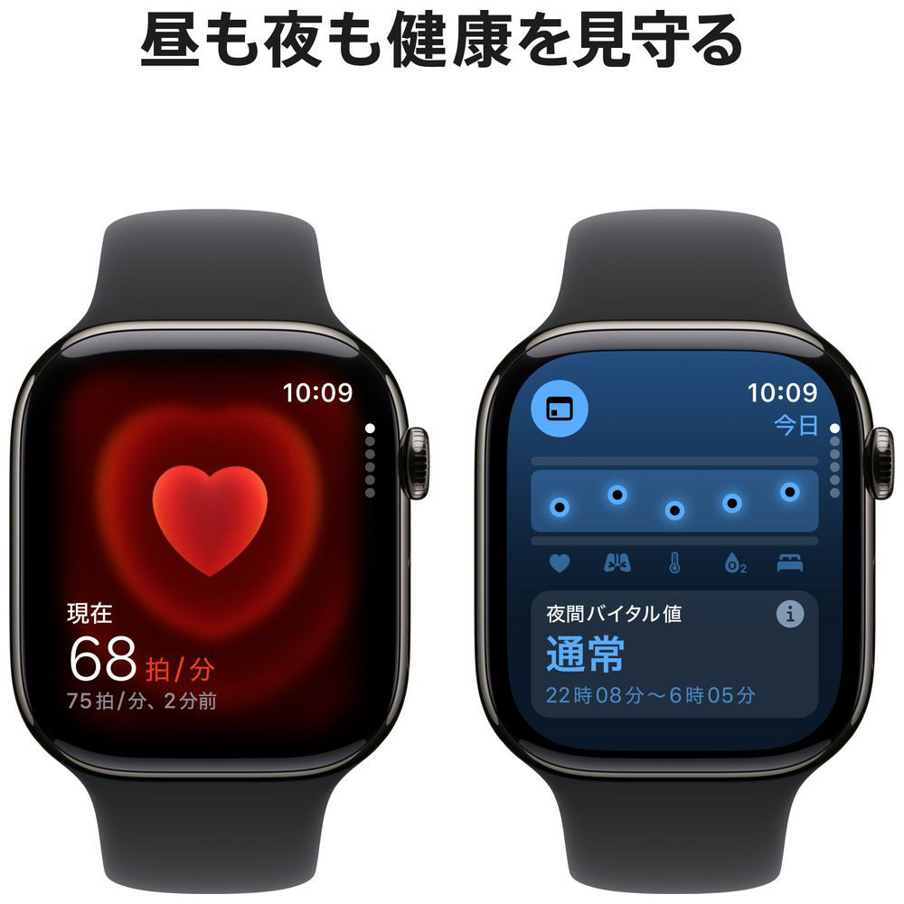 Apple Watch Series 10(GPS + Cellularモデル)- 46mmスレートチタニウムケースとブラックスポーツバンド ‐ M/L MWYE3J/A