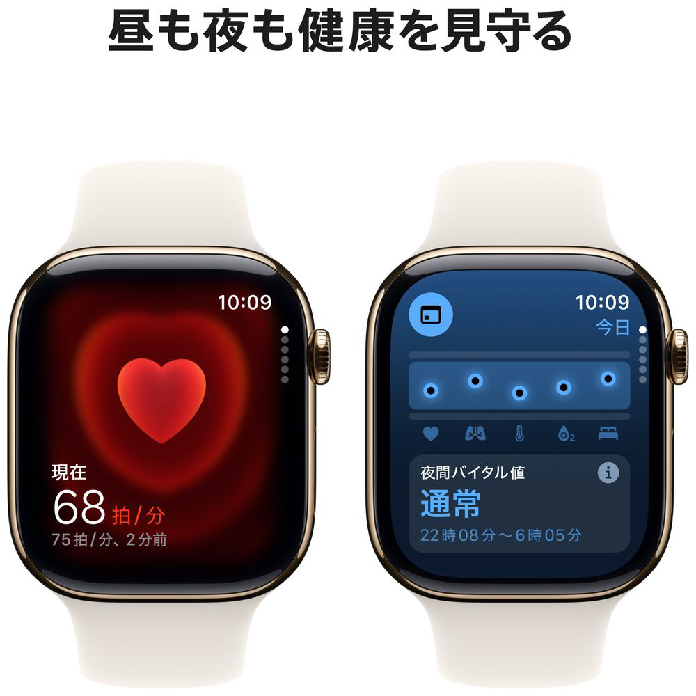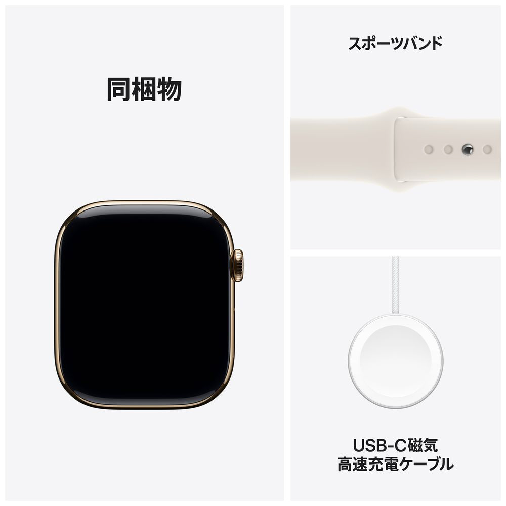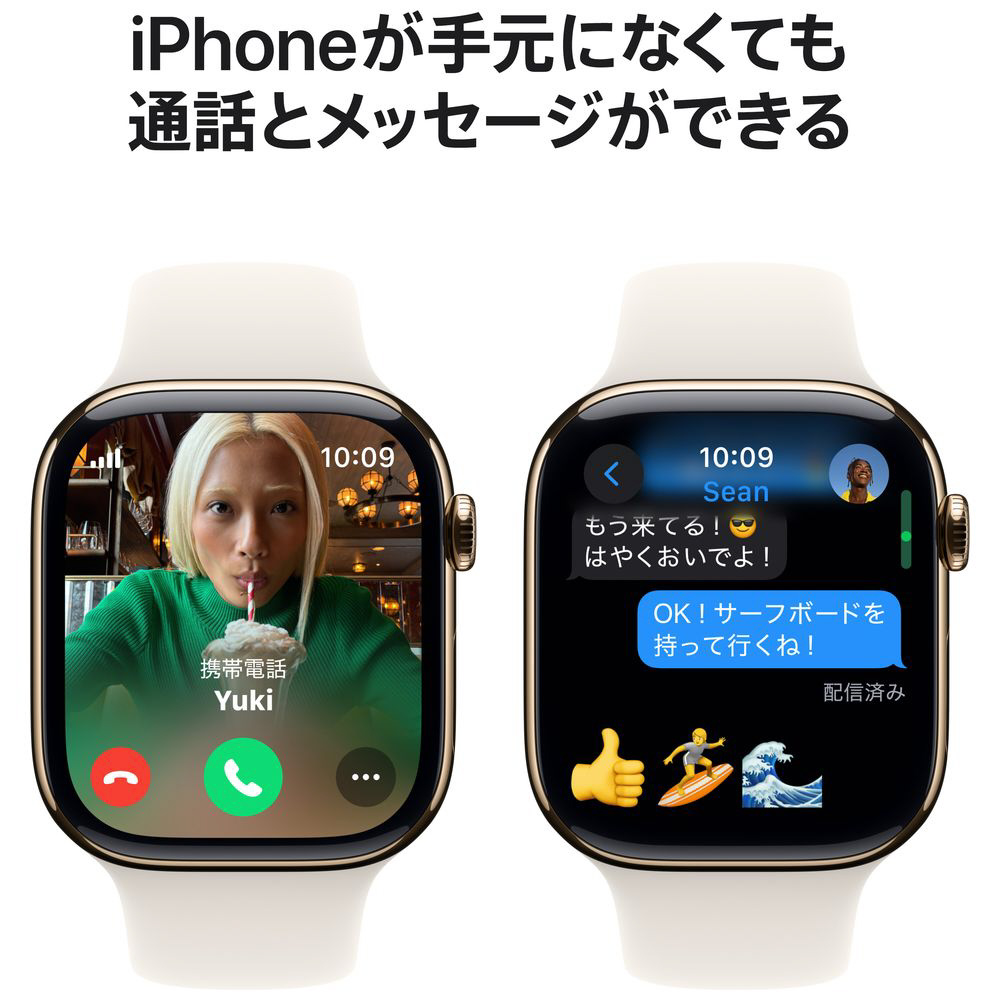 Apple Watch Series 10(GPS + Cellularモデル)- 46mmゴールドチタニウムケースとスターライトスポーツバンド ‐ S/M MWYX3J/A