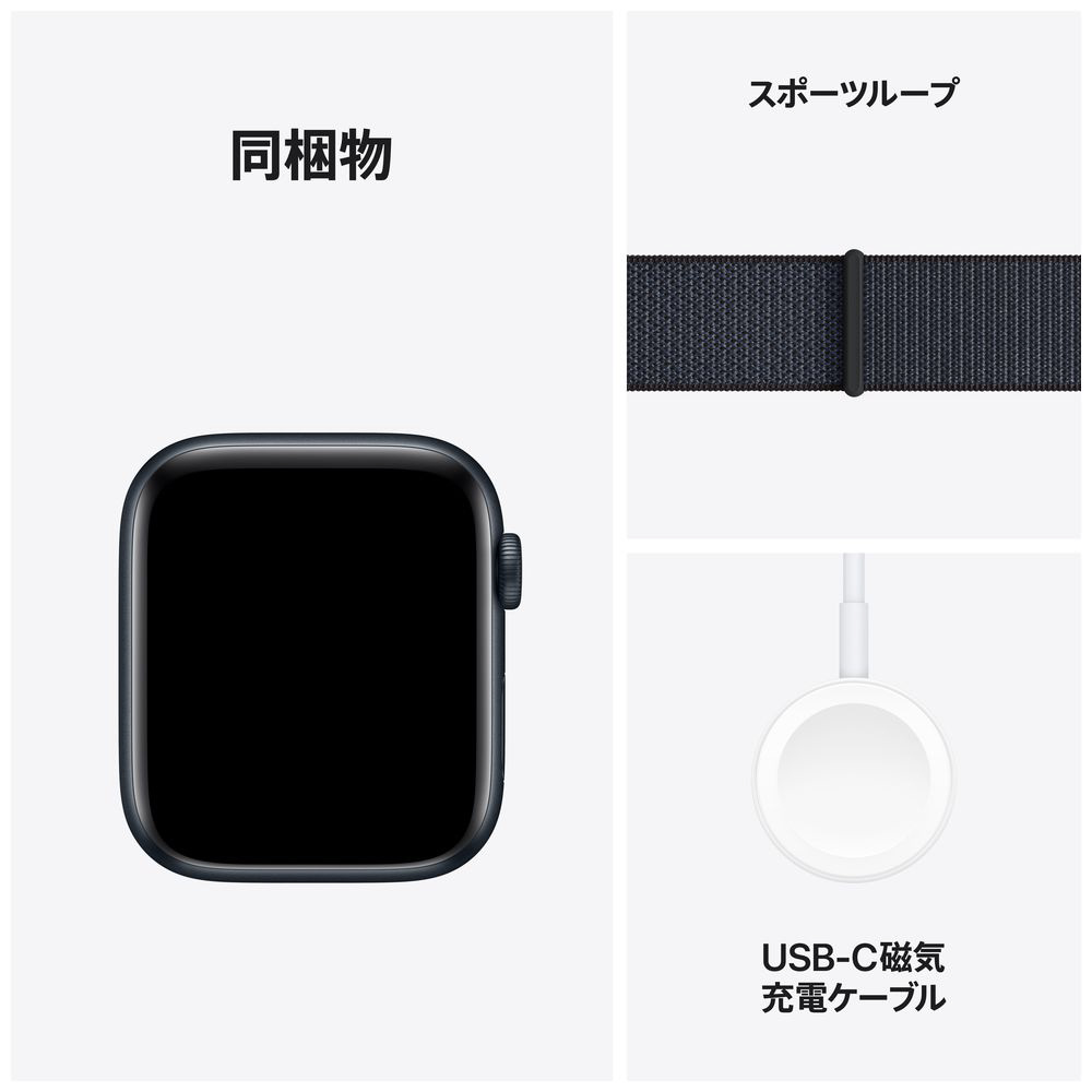 Apple Watch SE(GPSモデル)- 44mmミッドナイトアルミニウムケースとインクスポーツループ MXEP3J/A