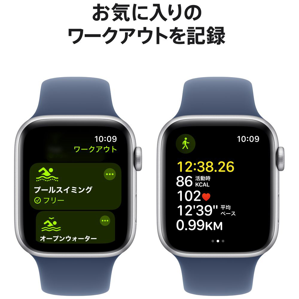 Apple Watch SE(GPSモデル)- 44mmシルバーアルミニウムケースとデニムスポーツバンド ‐ S/M MXEQ3J/A