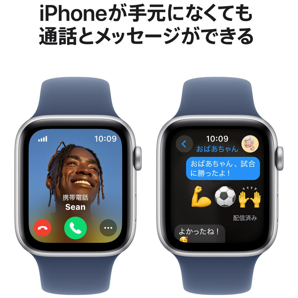 メッセージを送る。電話に出る。音楽やポッドキャストを聴く。Siriを使う。緊急SOSで助けを呼ぶ。Apple Watch SE(GPSモデル)をiPhoneまたはWi-Fiに接続すると、いつでもつながっていられます。