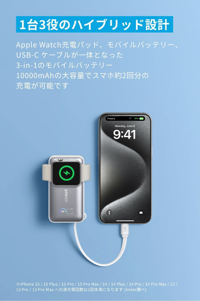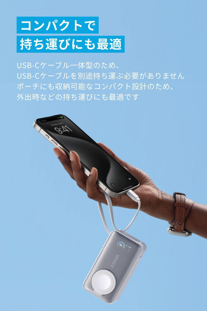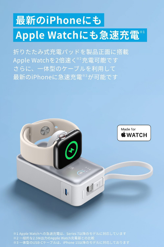 Anker MagGo Power Bank (10000mAh, 35W, For Apple Watch) ホワイト A1657N21 [USB Power Delivery対応 /3ポート]