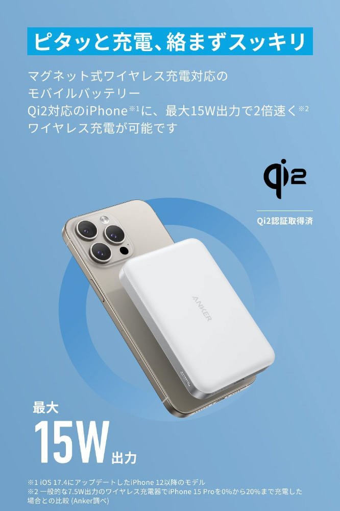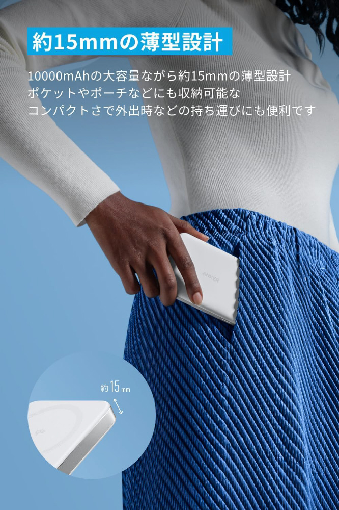 Anker MagGo Power Bank (10000mAh, Slim) ホワイト A1664N21 [USB Power Delivery対応 /1ポート]