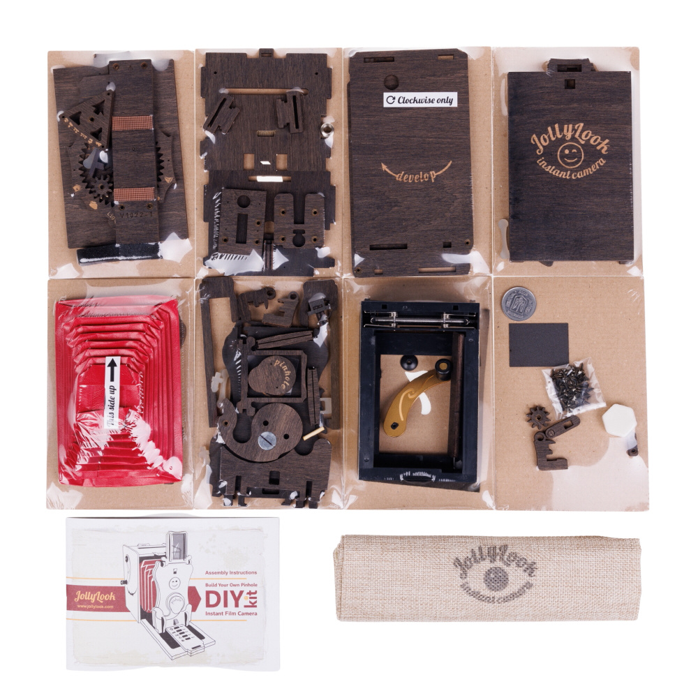 ウクライナのカメラメーカーJollyLookのinstax miniフィルム用折りたたみ式ピンホールカメラのDIY組み立てキットです。