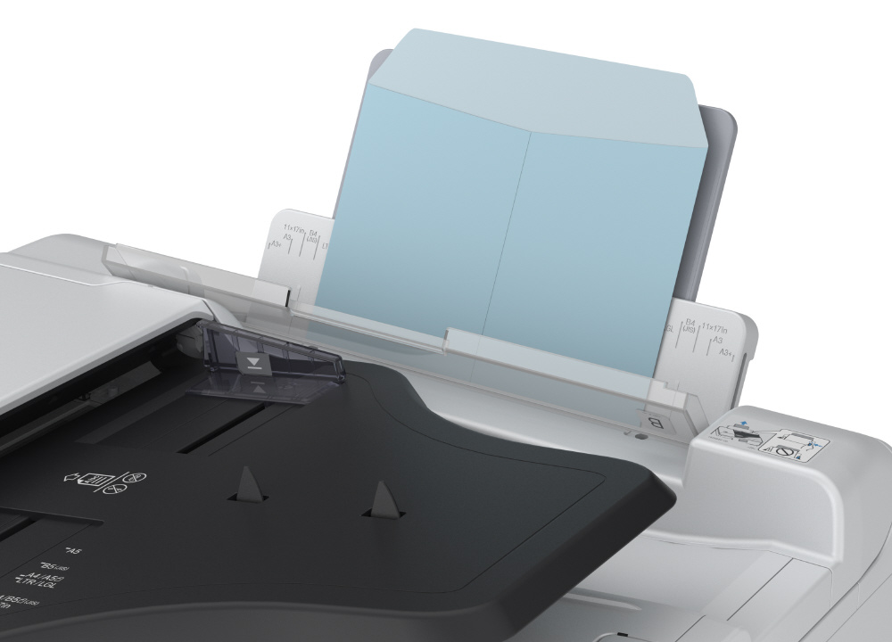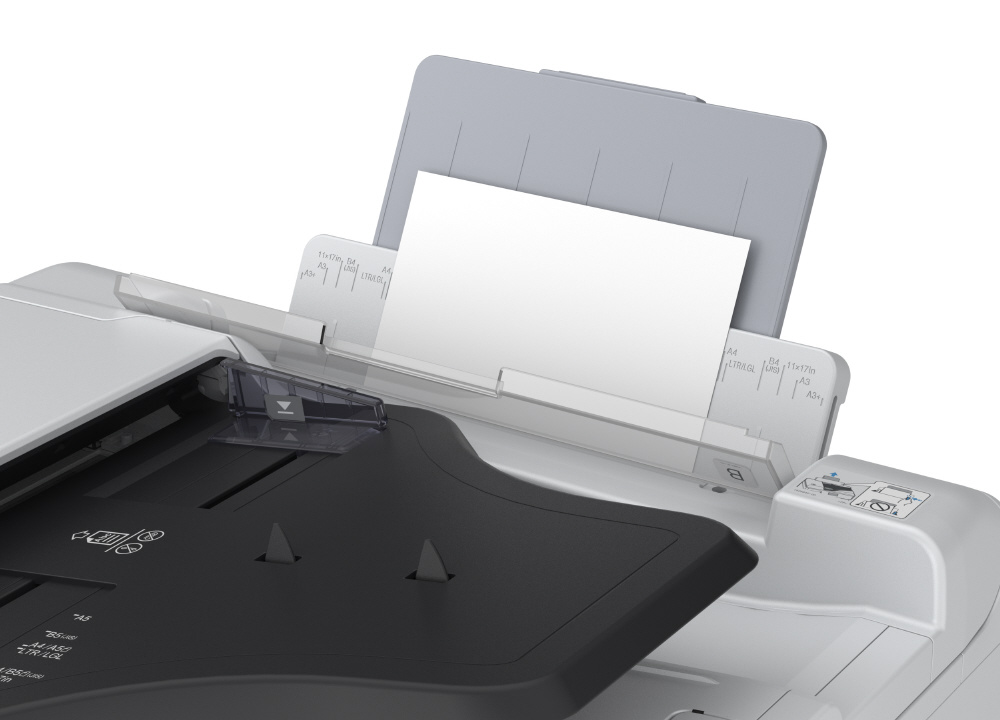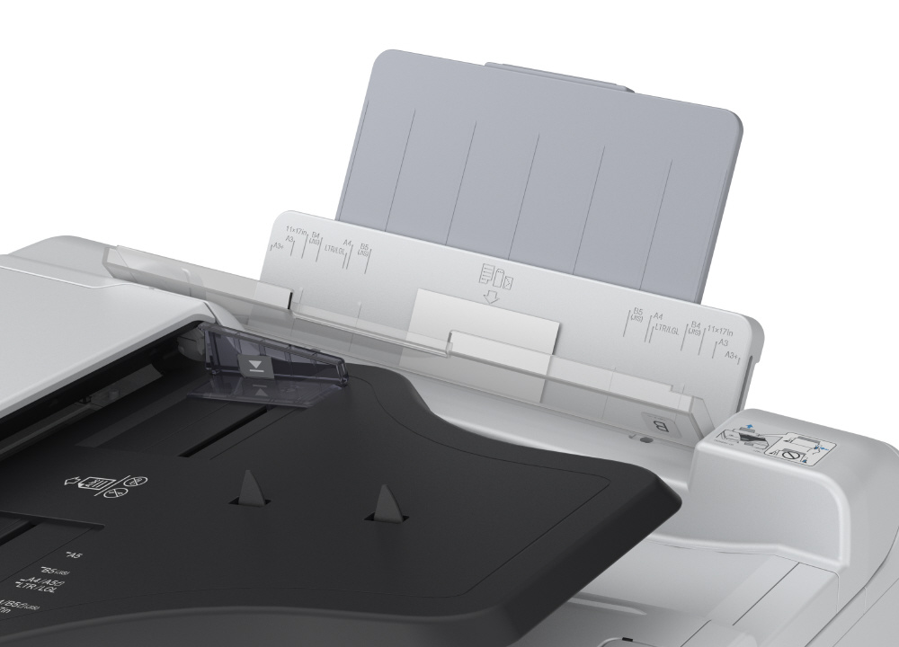 | ADF(オートドキュメントフィーダー) | [自動紙送り装置(オートドキュメントフィーダー:ADF)機能] 原稿送り装置の種類:自動両面原稿送り装置(両面同時読み取り) 原稿サイズ:A3/B4/A4/B5/A5/A6/リーガル/レター 原稿坪量:52〜128g/m2 原稿読み取り速度(スキャン時):モノクロ:25ipm(A4横)、カラー:25ipm(A4横) 自動両面読み取り:両面コピー・両面ファクス・両面スキャンでA6横(両面スキャンのみ)/A5/A4/A3/B5/B4の自動両面給紙が可能 |