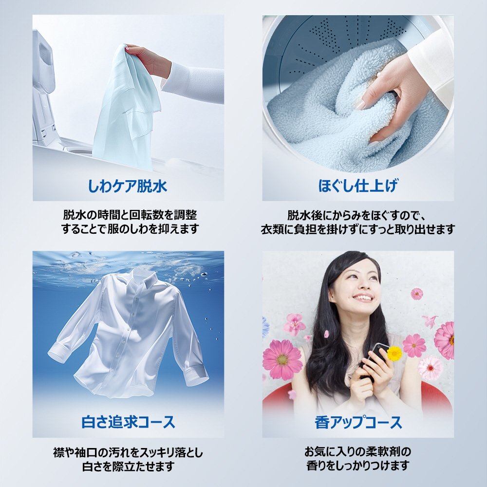 | 仕様2 | 部屋干し臭の気になる衣類も除菌コースでスッキリ |