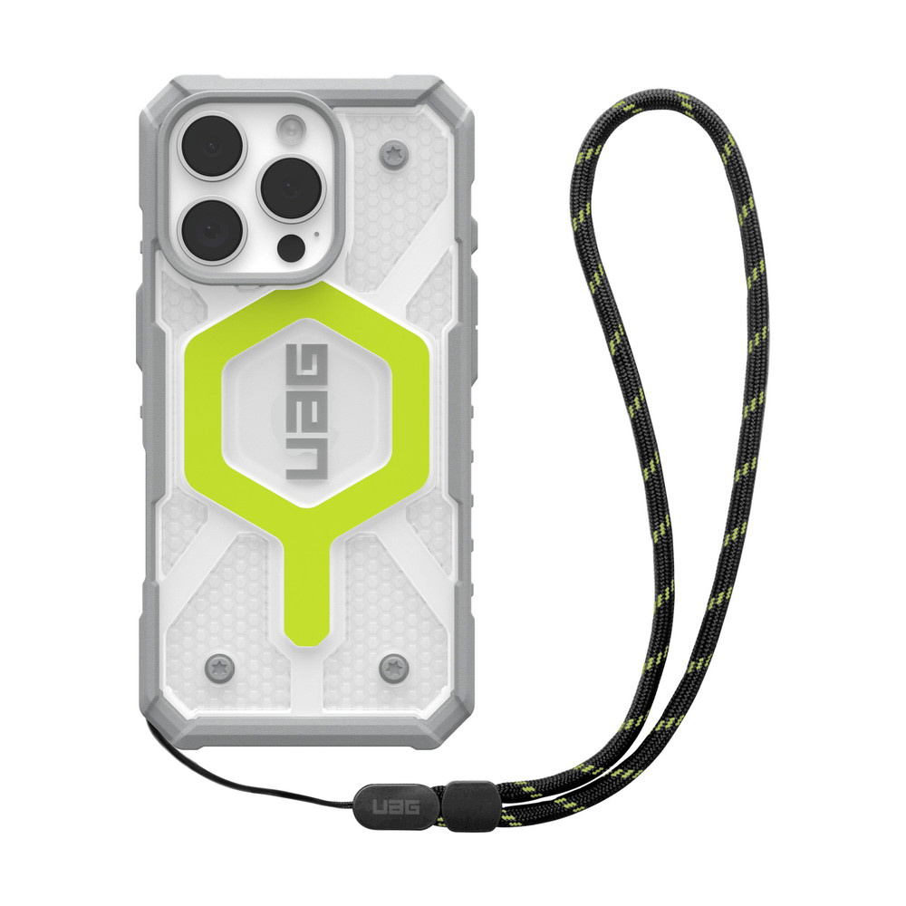 iPhone 16 Pro 耐衝撃ケース MAGSAFE対応 PATHFINDER CLEAR (ランヤード同梱) アクティブネオン UAG-IPH24MA-MS-AN/L