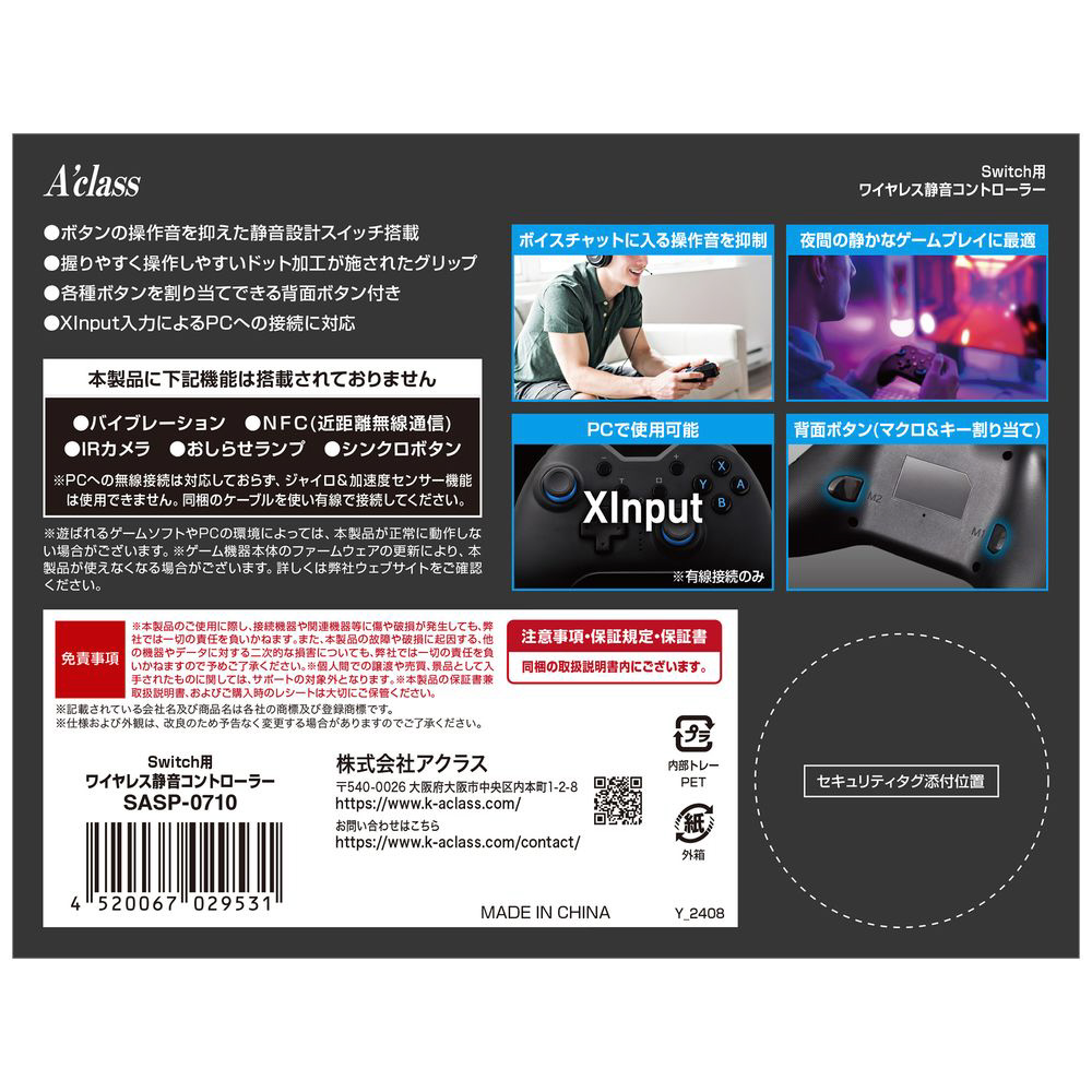 Switch用ワイヤレス静音コントローラー ブラック [SASP-0710]