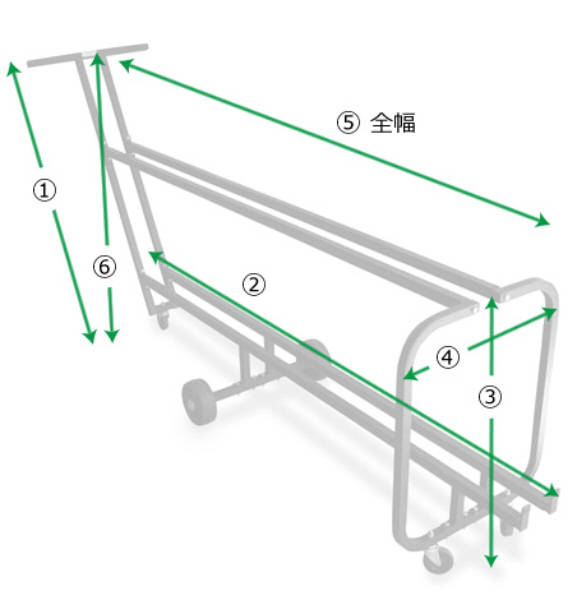 譜面台収納カート出し入れしやすい耐久性のある譜面台用収納カートで、25台まで譜面台を収納することができます。カート重量: 約19kgサイズ: (1)115cm (2)189cm (3)73cm (4)50cm (5)(全幅)230cm (6)108cm