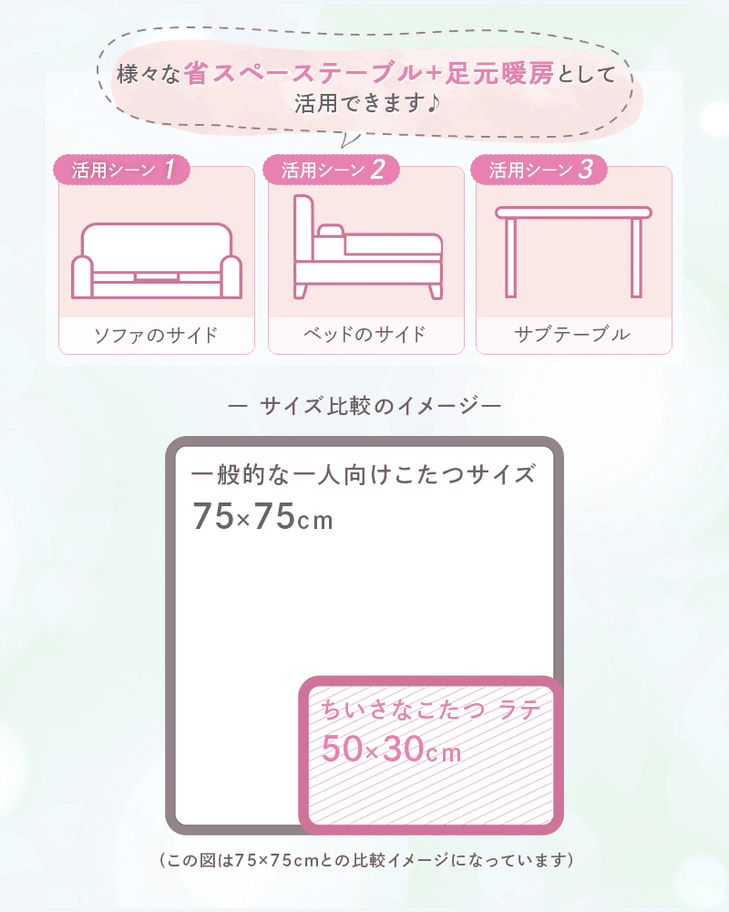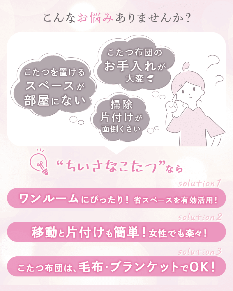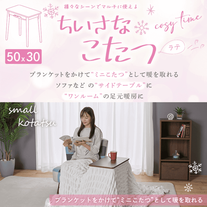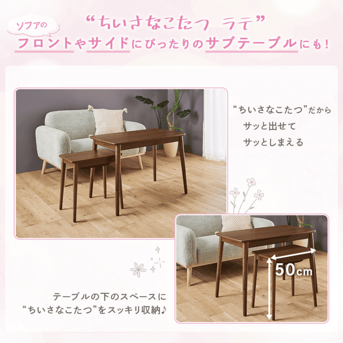 こたつを諦めていたお部屋にも、「ちいさなこたつ」なら省スペースで手軽に設置できます。