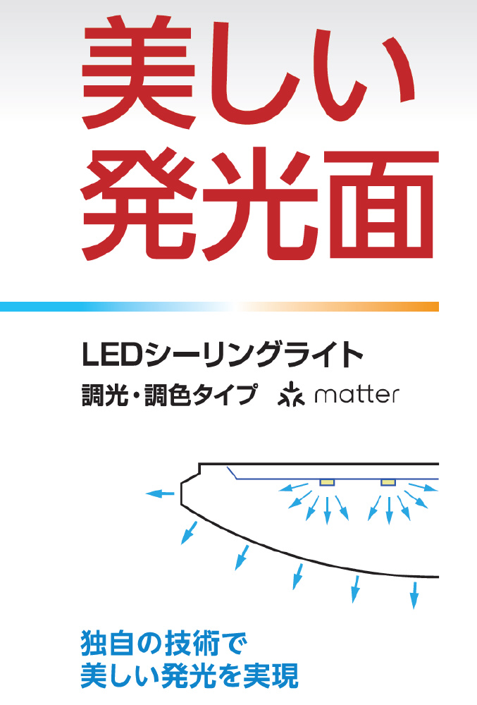 スマートホームの共通規格Matter に対応した低価格シーリングライト。調光調色タイプ。