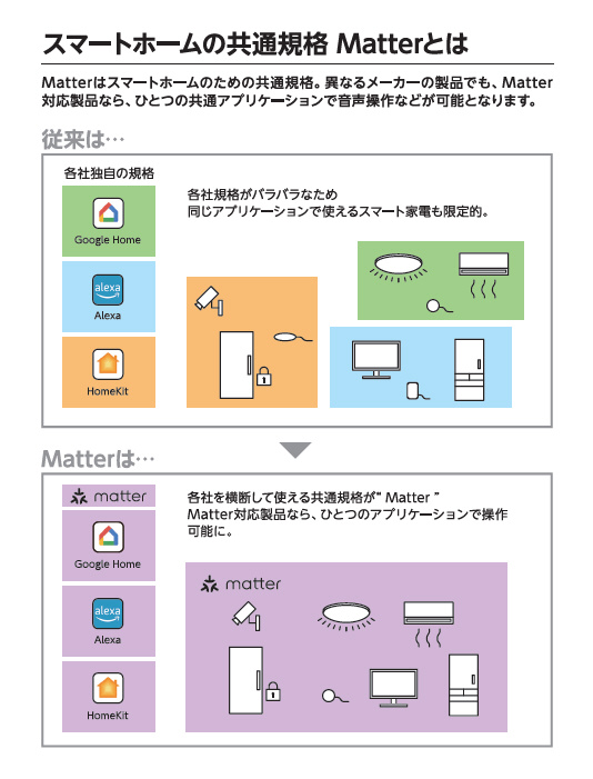 ・matter 対応の家電や住宅設備なども一緒に操作が可能です。